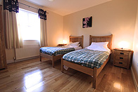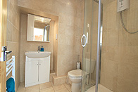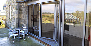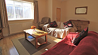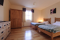All ground floor. Two bedrooms with TV: 1 x twin, 1 x double (zip-link, can be twin by prior arrangement) with en-suite shower, basin and WC. Bathroom with bath, shower over, basin and WC. Fitted kitchen with dining area and folding doors to patio. Sitting room with woodburning stove and double sofa bed.